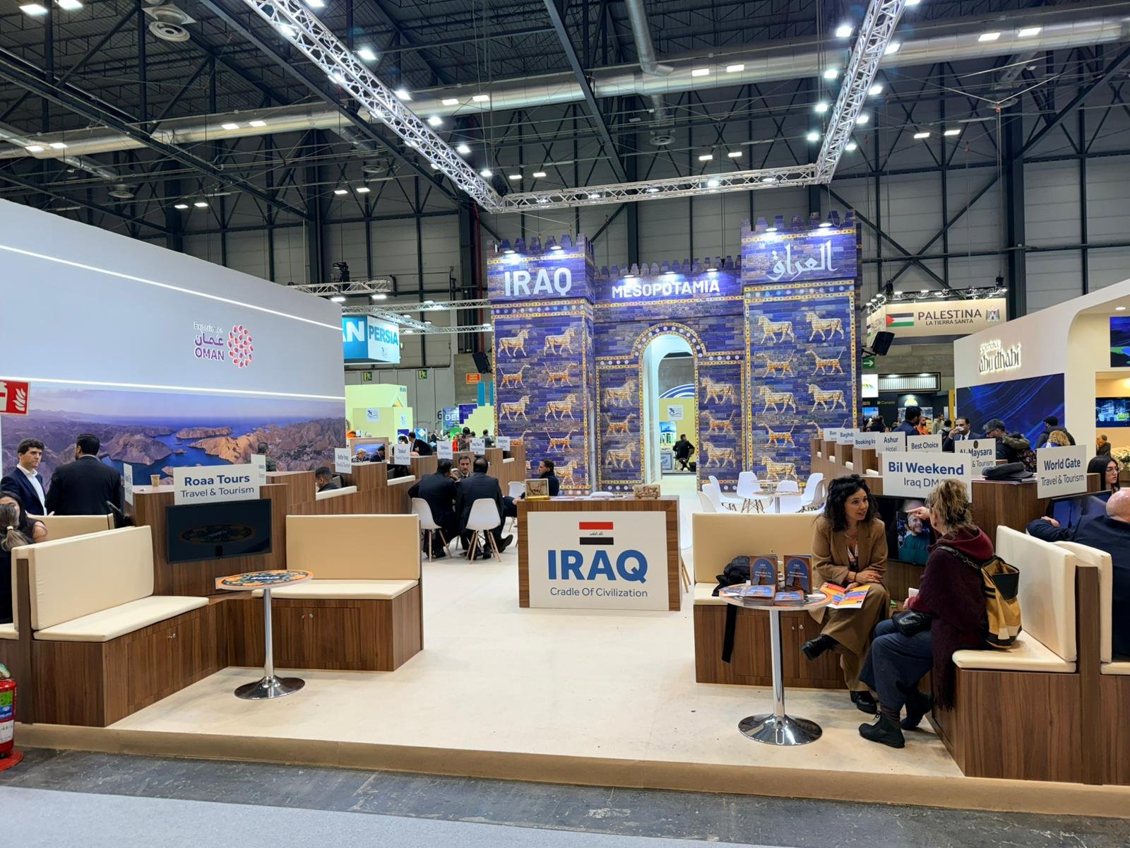 During the exhibition, meetings were held with the Chairman of the Iraqi Association of Travel and Tourism Companies, Mr. Haider Al-Dujaili, as well as Mr. Aus, a member of the Iraqi–Spanish Business Council, who played a key role in the success of the Iraqi participation, representing the Council and holding important meetings with several Spanish and international companies interested in the Iraqi market.