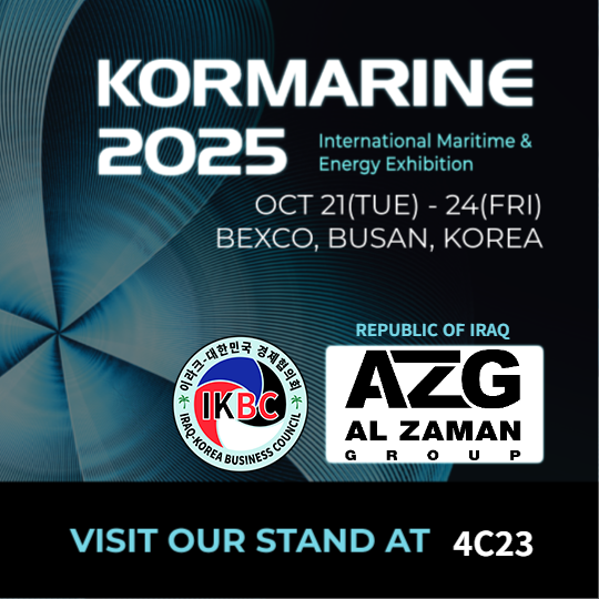 AL ZAMAN GROUP (AZG), a leading Iraqi company with diversified business interests, is proud to announce its participation in KORMARINE 2025, one of the world’s largest and most influential international exhibitions for shipbuilding, marine, and offshore industries. The exhibition will be held in Busan, South Korea, bringing together global leaders, innovators, and stakeholders from across the maritime sector.